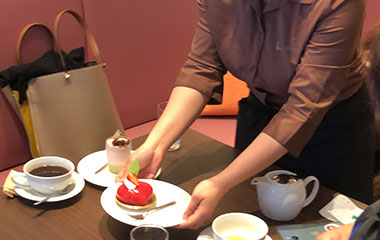 週に5日、レストランでアルバイトをしています。アルバイト先では、日本人の先輩に注文の取り方や、料理の出し方などを教えてもらいます。最近はレジをしたり、電話対応も出来るようになりました。