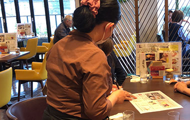 終わった後、先輩とお互いの国の料理の話をしたり、生活についての話をします。