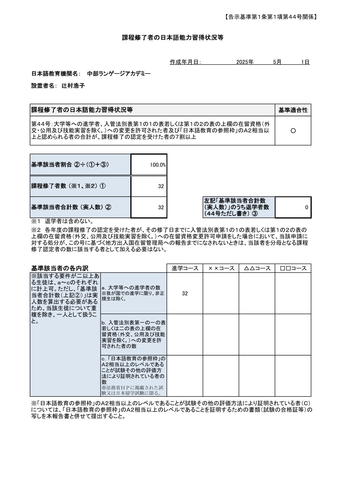 公開情報 2025年度自己点検・評価 PDFダウンロード (PDF ファイル 0.7MB) 課程修了者の日本語能力習得状況等 PDFダウンロード (PDF ファイル 0.1MB) 教育の理念・目標 準備中